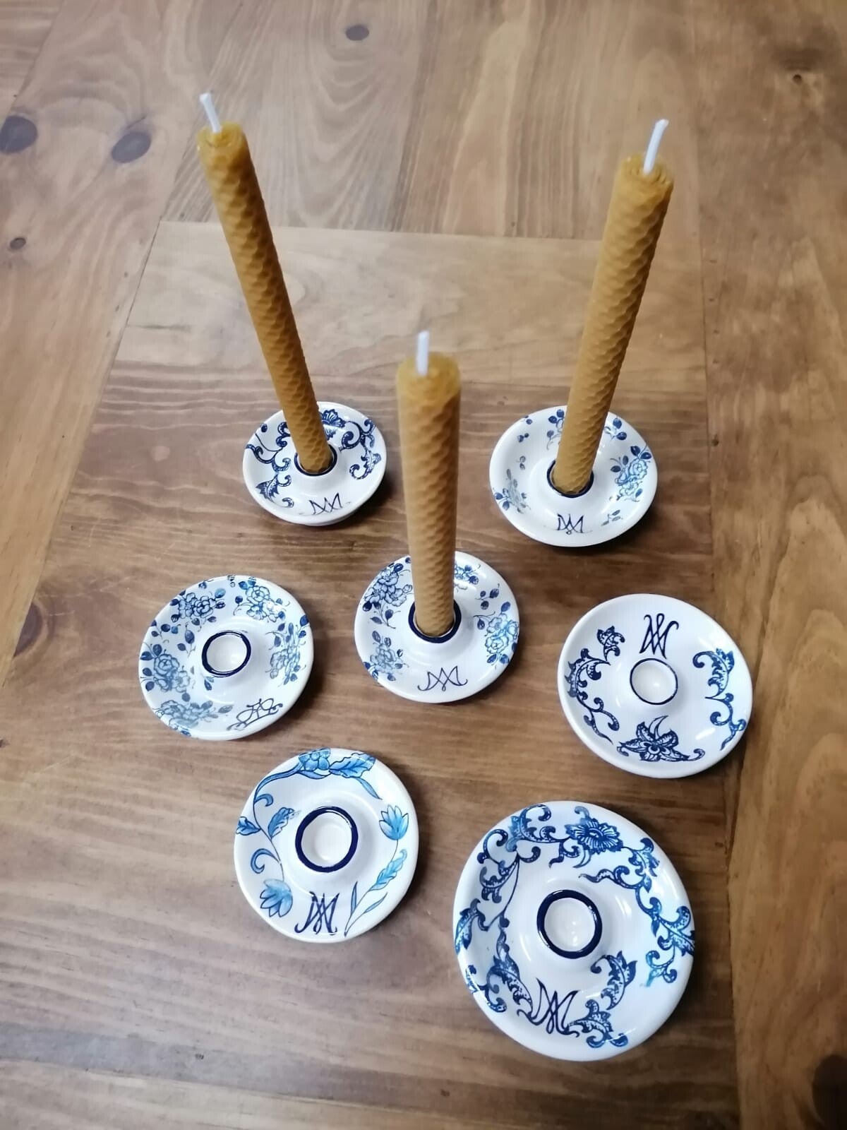 Candelabros de Valli Artesanía elaborados artesanalmente en exclusiva para la tienda del santuario, con candela de cera de abeja virgen elaborada por la comunidad.